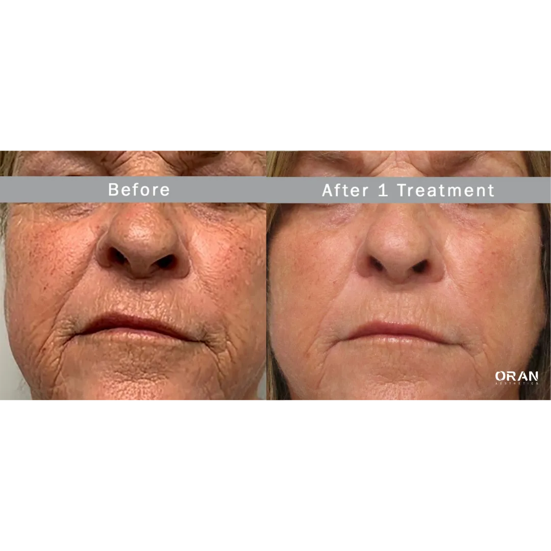 De geavanceerde behandeling stimuleert de productie van collageen en elastine, wat leidt tot een stevigere, vollere en jeugdigere huid.